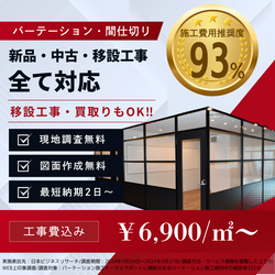デザイン性は抜群で、ショールームも充実。ただし、価格が高く、工期も長い。大企業向けという印象。実際、見積もりを取ったら、パーテーションおまかせドットコムの約1.8倍の金額だった。